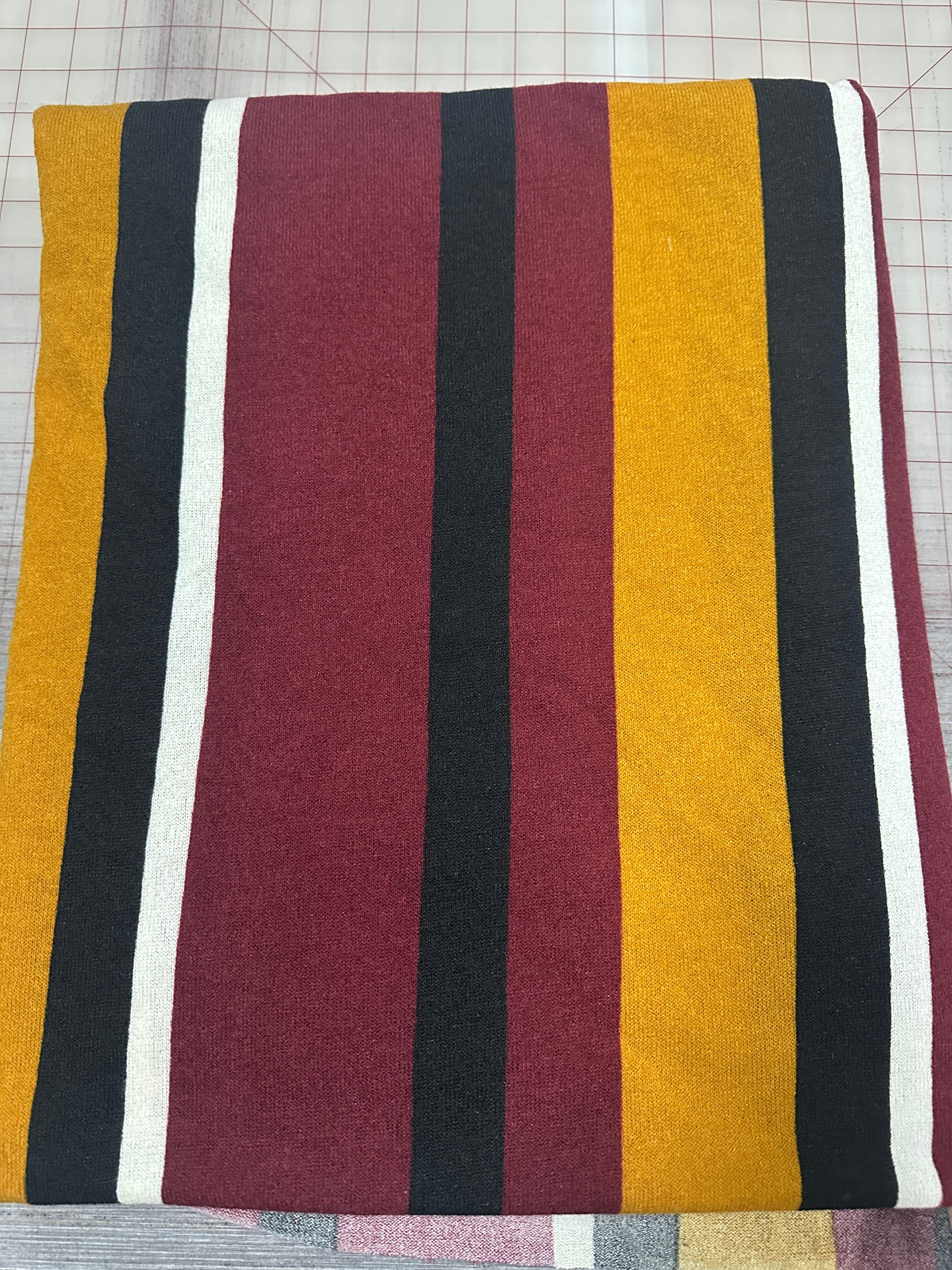 Hacci knit burgundy and mustard stripe