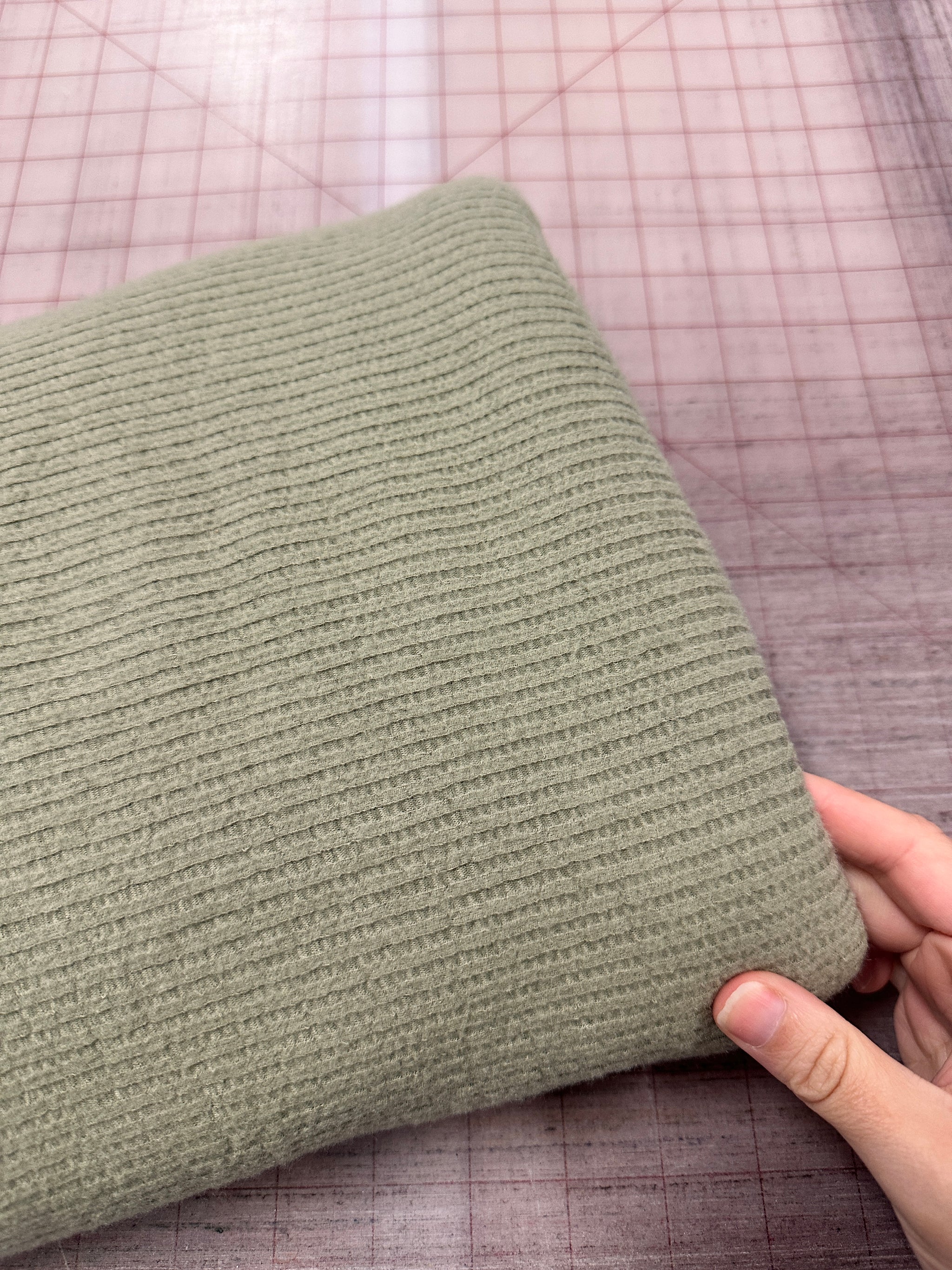 Light olive brushed sweater rib knit poly rayon spandex 65/32/3 8.5 oz