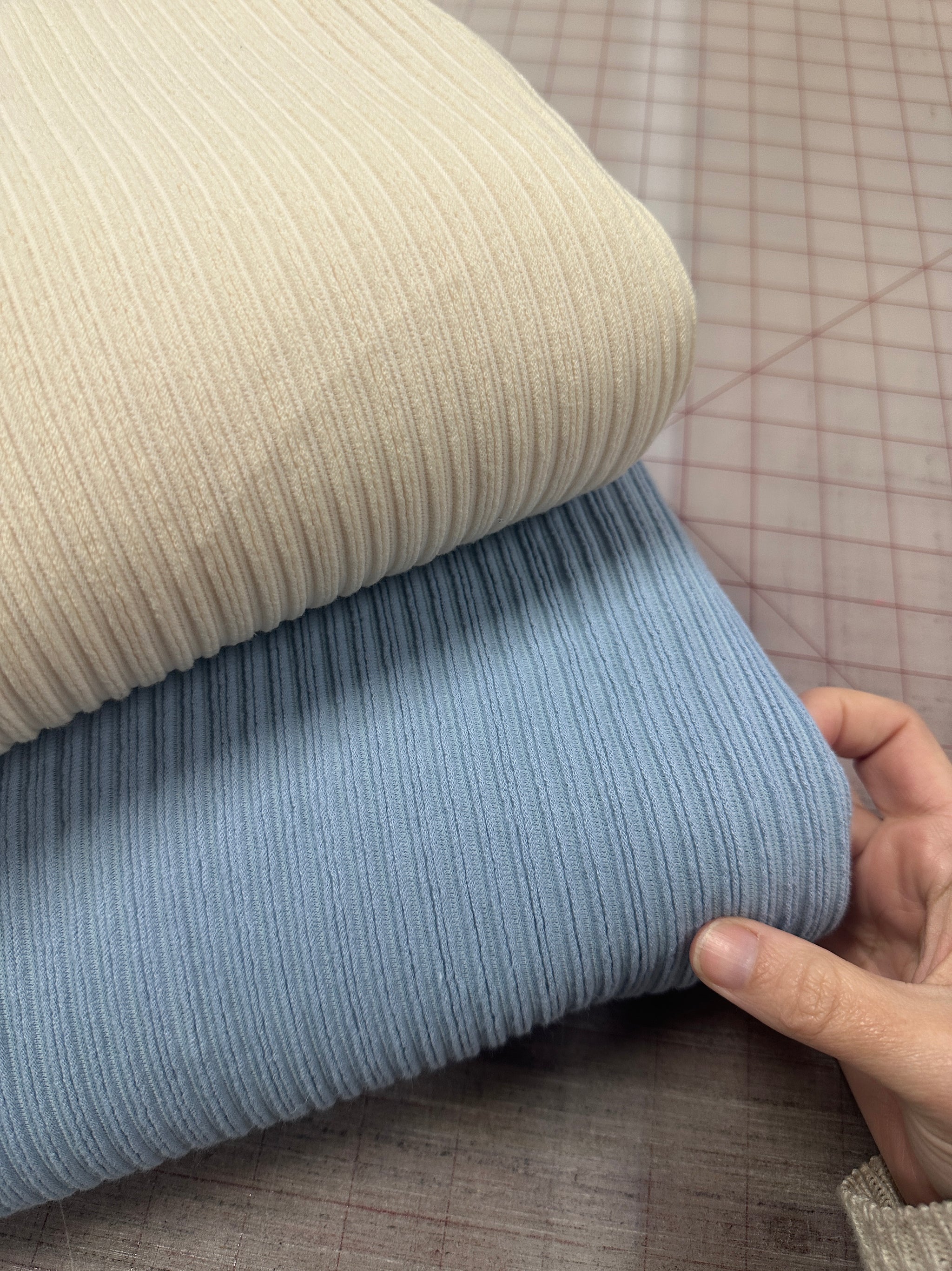 Ruffle jersey knit 81/17/2 cotton poly spandex