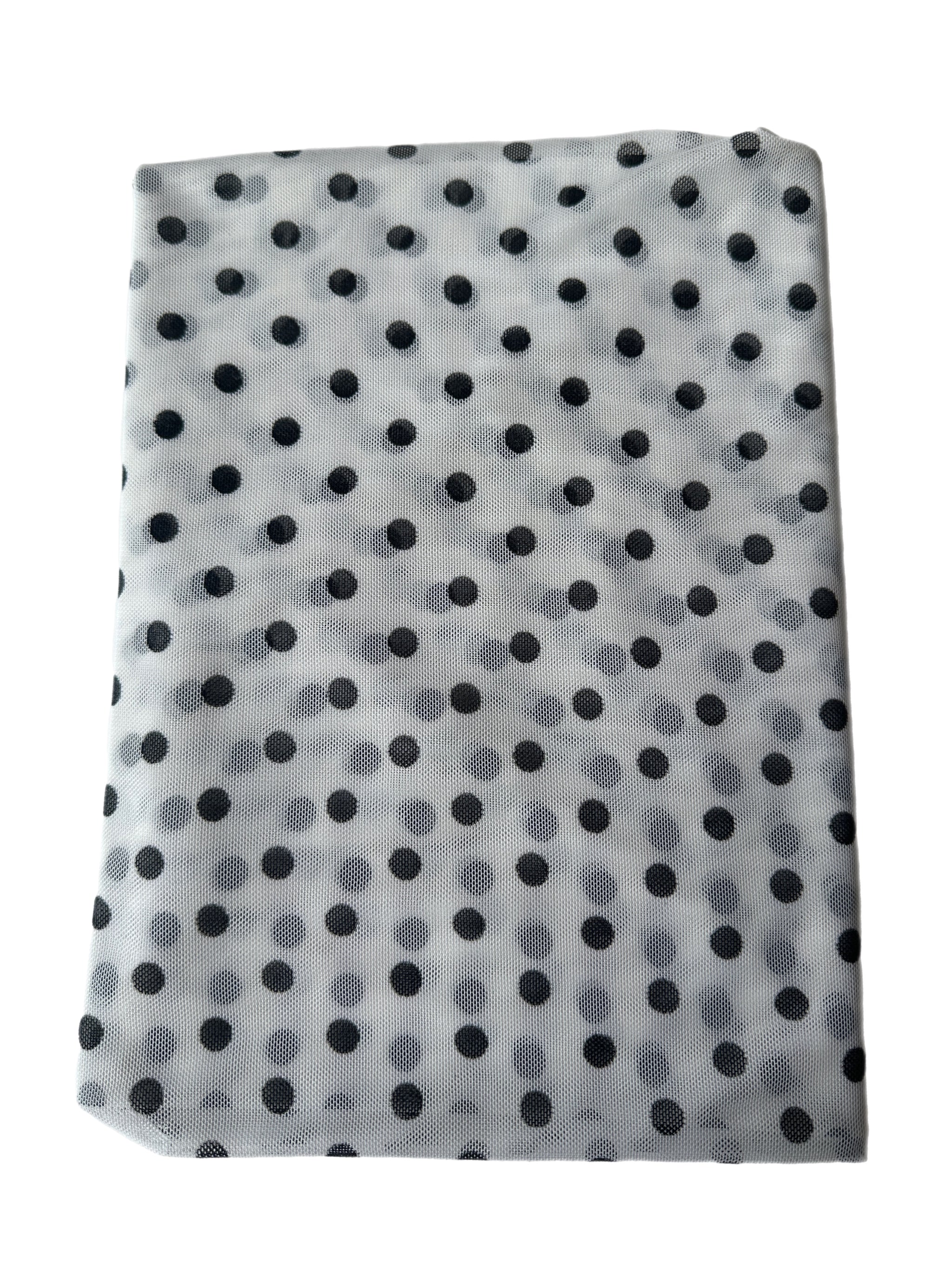 White and black polka dot mesh knit